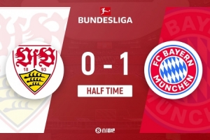 傷停補(bǔ)時(shí)8分鐘。上半場比賽結(jié)束,拜仁1-0斯圖加特。