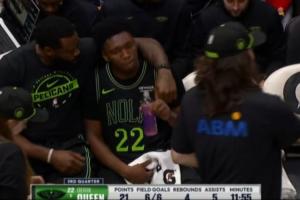 此役,鵜鶘最多時(shí)落后25分,但是第三節(jié)在新秀德里克·奎因的帶領(lǐng)下反超了比分。