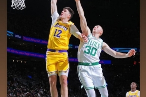 此前打凱爾特人拉拉維亞搶斷反擊一條龍,起飛滑翔單臂劈扣。湖人新秀蒂耶羅今日在INS調(diào)侃道:“這我見過他跳得最高的一次。??”