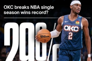 賽后預(yù)測機(jī)構(gòu)Polymarket更新了雷霆打破73勝常規(guī)賽勝場紀(jì)錄的概率——29%。