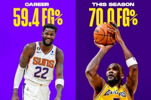 他有望成為隊史首位單賽季場均得分超過15分且命中率超過70%的球員,展現(xiàn)出在內(nèi)線的絕對統(tǒng)治力、高效性和掌控力。