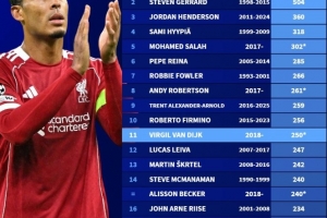 體育資訊12月14日訊 英超第16輪,利物浦在安菲爾德以2-0的比分戰(zhàn)勝布萊頓。本場(chǎng)比賽,紅軍隊(duì)長范戴克迎來代表球隊(duì)的第150場(chǎng)英超出場(chǎng),這讓他足以位居隊(duì)史第11位。
