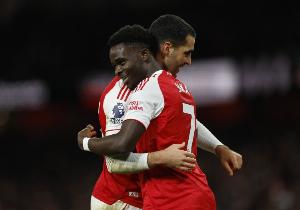 狼隊在最后時刻換上替補球員加強攻勢,終于在第90分鐘由馬特烏斯·馬內(nèi)助攻阿洛科達爾扳平比分。眼看就要丟掉榜首位置,薩卡在補時階段的傳中迫使狼隊后衛(wèi)耶森·莫斯克拉自擺烏龍,最終幫助阿森納驚險取勝。