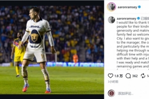 體育資訊12月16日訊 拉姆塞更新社媒動態(tài),與墨西哥球迷告別。