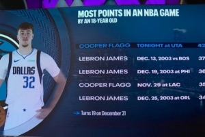 本場(chǎng)比賽,獨(dú)行俠狀元弗拉格表現(xiàn)出色,再次刷新生涯得分新高(此前35分),在42分鐘的時(shí)間里,投籃27中13,三分球4中1,罰球20中15,空砍42分7籃板6助攻1搶斷2蓋帽的數(shù)據(jù)。