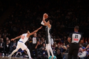 馬刺的上一場比賽是在拉斯維加斯與雷霆的美職籃杯半決賽,球隊111-109獲勝,德文·瓦塞爾23分5籃板4助攻,德阿隆·福克斯22分2籃板4助攻2搶斷,斯蒂芬·卡斯爾22分6籃板2助攻,替補出場的文班亞馬22分9籃板2助攻2蓋帽。法國人在第四節(jié)展示其攻防兩端的統(tǒng)治力,拿到15分。除了文班亞馬,馬刺后衛(wèi)線上人才濟濟且天賦滿滿,只是射程稍顯不足。戰(zhàn)勝雷霆的馬刺士氣大振,不過從之前的比賽看,馬刺外線防守容易出現(xiàn)漏人的情況,尼克斯三分球出手次數(shù)和命中率均位居全聯(lián)盟前列,馬刺需要小心的應對。