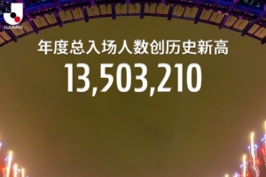 體育資訊12月16日訊 根據(jù)J聯(lián)賽官方統(tǒng)計(jì),今年J聯(lián)賽年度觀眾總數(shù)達(dá)到了13503210人次,創(chuàng)歷史新高。