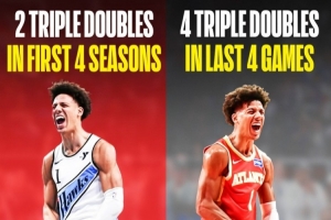 有意思的是,杰倫·約翰遜生涯一共拿到8次三雙,而他生涯前4個(gè)賽季才拿到過(guò)兩次。而本賽季就拿到了6次,其中更是包含這連續(xù)4場(chǎng)三雙。