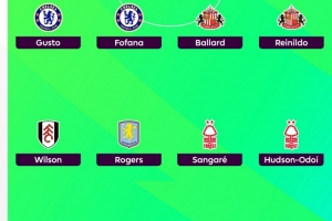 中場:威爾遜(富勒姆)、羅杰斯(維拉)、桑加雷(諾丁漢森林)、奧多伊(諾丁漢森林)