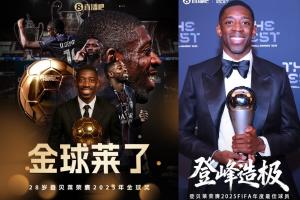 體育資訊12月17日訊 登貝萊榮膺2025FIFA年度最佳球員,包攬2025金球獎和2025FIFA最佳兩項大獎。