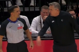 比賽最后24秒,森林狼主教練芬奇在場邊大罵裁判,他沖裁判吼道:“閉嘴,你剛才漏了兩次吹罰,你TM心知肚明,你TM明明知道(犯規(guī)了)!”
