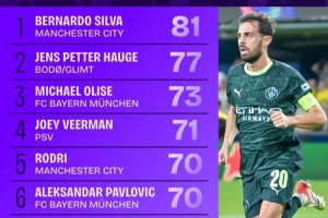 6.帕夫洛維奇(拜仁):70