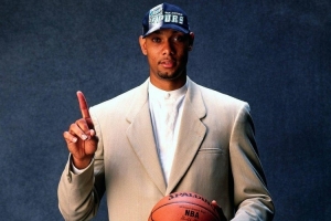 1997-98賽季,蒂姆-鄧肯作為新秀場均貢獻(xiàn)21.1分、11.9個(gè)籃板、2.7次助攻和2.5次蓋帽,投籃命中率達(dá)到54.9%,包攬最佳新秀+最佳陣容一陣+全明星。