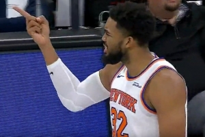 GIF-唐斯轉(zhuǎn)身打史密斯拋投命中,裁判吹進(jìn)攻犯規(guī),尼克斯挑戰(zhàn)成功變2+1