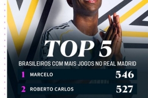 維尼修斯追平卡塞米羅,成為皇馬隊(duì)史出戰(zhàn)比賽第3多的巴西球員,位居他身前的是馬塞洛(546場)以及卡洛斯(527場),羅德里戈以281場位居第5。