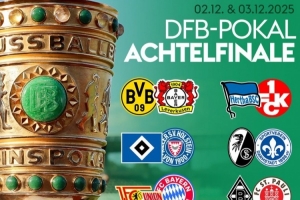 體育資訊11月3日訊 德國杯1/8決賽對陣已經(jīng)出爐,多特將對陣?yán)瘴謳焐萑式皇职亓致?lián)合,比賽將于當(dāng)?shù)貢r(shí)間12月2日、3日進(jìn)行。