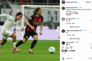 本場(chǎng)比賽40歲莫德里奇首發(fā)打滿全場(chǎng),他也在社媒曬出本場(chǎng)與迪巴拉對(duì)抗照片,配文寫道:“團(tuán)隊(duì)取得偉大勝利!讓我們攜手前進(jìn)!加油米蘭!”