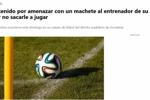 據(jù)馬德里高級(jí)警察總局通報(bào),事件發(fā)生在本周日,位于馬德里奧爾塔萊薩區(qū)的一處足球場附近。被捕者與其兒子的足球教練發(fā)生激烈爭吵,多名目擊者向警方證實(shí)該男子曾手持砍刀作出暴力姿態(tài)。
