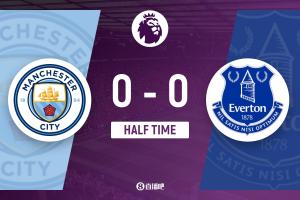 上半場傷停補(bǔ)時2分鐘,半場結(jié)束,曼城暫0-0埃弗頓。