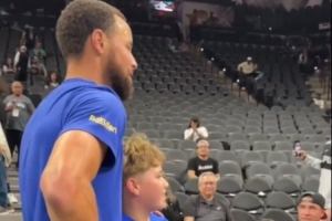 GIF-獨(dú)腿小球迷稱庫里是自己最喜歡的球員 庫里暖心合影+給球迷的假肢簽名