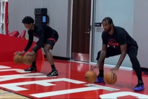 體育資訊10月19日訊 火箭官方社媒更新,分享阿門-湯普森與塔里-伊森一同進(jìn)行運球訓(xùn)練的視頻。