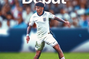 曼城邊衛(wèi)奧賴?yán)艘蹫橛⒏裉m首發(fā)出戰(zhàn),上演國家隊(duì)首秀,曼城社媒曬出海報(bào),慶祝自家青訓(xùn)球員奧賴?yán)状未碛⒏裉m隊(duì)出場(chǎng)。