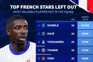 體育資訊11月14日訊 德國轉(zhuǎn)會(huì)市場統(tǒng)計(jì)了無緣本期法國隊(duì)名單球員的身價(jià),并列出榜單,登貝萊1億歐居首。