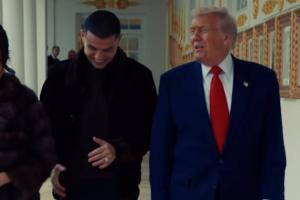 體育資訊11月19日訊 白宮官方剛剛發(fā)布社媒,曬出了一段C羅與美國總統(tǒng)特朗普一同在走廊散步的片段,并且配文:“兩位GOATS”。