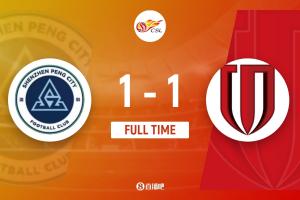 上半場比賽結(jié)束,深圳新鵬城1-1成都蓉城。