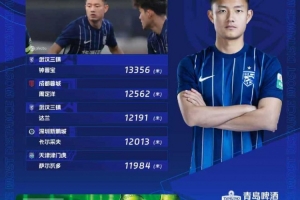 體育資訊11月24日訊 中超第30輪跑動榜公布,其中武漢三鎮(zhèn)兩將入選,鐘晉寶位列榜首,蓉城隊長周定洋列次席。