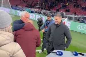 此役賽前,本菲卡主帥穆里尼奧來到場邊,與評述比賽的昔日弟子斯內(nèi)德?lián)肀Ш选?/p>