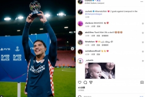 歐冠官方也在賽后將其評(píng)選為本場(chǎng)MVP,他也在賽后通過(guò)社媒曬出自己高舉MVP獎(jiǎng)杯的照片并配文:“真主至大!??在歐冠對(duì)利物浦打進(jìn)2球!”