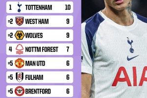 體育資訊12月1日訊 在本輪英超,熱刺主場(chǎng)1-2不敵富勒姆。OPTA盤點(diǎn)了2025年英超主場(chǎng)失利場(chǎng)次榜,具體如下:
