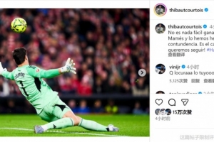 庫爾圖瓦社媒曬出撲救照片,配文:“在圣馬梅斯取勝絕非易事,而我們今天贏得干脆利落。這正是我們想要繼續(xù)前進(jìn)的道路!”