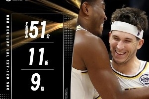 10月28號,爵士經(jīng)歷加時以138-134力克太陽。馬爾卡寧此役砍下51分,創(chuàng)下個人生涯單場得分紀錄。全場比賽出場45分鐘32投14中,三分13中6、罰球17中17,狂轟51分14籃板3助攻。