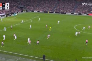 西甲第19輪,皇馬3-0客勝畢爾巴鄂競技。比賽第56分鐘,姆巴佩在己方半場背身拿球被犯規(guī),主裁吹哨,卡馬文加在對(duì)方半場開球給到姆巴佩,這時(shí)主裁吹哨示意回到犯規(guī)地點(diǎn)開球。在死球狀態(tài)下,姆巴佩穿襠戲耍了撲過來的畢巴后衛(wèi)博伊羅,博伊羅憤怒推翻了姆巴佩,主裁趕過來將姆巴佩教育了一番,姆巴佩雙手指自己表示不解。