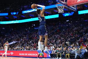 體育資訊12月5日訊 76人主場(chǎng)迎戰(zhàn)勇士,上半場(chǎng)56-34領(lǐng)先。