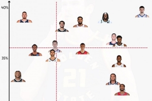 縱坐標未三分命中率,橫坐標為籃下防守率。