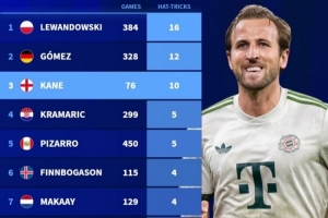 體育資訊12月9日訊 德國轉(zhuǎn)會(huì)市場(chǎng)盤點(diǎn)了21世紀(jì)德甲球員帽子戲法次數(shù)排名,凱恩10次已經(jīng)來到第三位。
