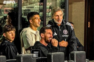 梅西組織的青少年錦標(biāo)賽“梅西杯”在邁阿密開幕,梅西與蘇亞雷斯來到現(xiàn)場(chǎng),觀看巴薩對(duì)陣河床的青訓(xùn)梯隊(duì)比賽。
