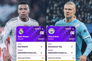 姆巴佩、哈蘭德本賽季聯(lián)賽場均數(shù)據(jù)對比: