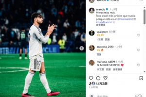 本場比賽阿森西奧首發(fā)出場,賽后他也在社媒曬出本場照片,配文鼓勵球隊寫道:“我們配得上更多!此刻我們需要比以往更加團結(jié),因為我們是皇馬!”
