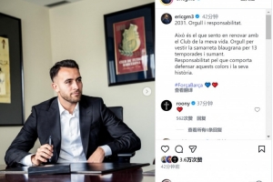 埃里克·加西亞社媒曬出續(xù)約照片,并寫道:“2031年,自豪與責任?!?/p>