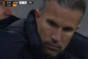 場邊費耶諾德主帥范佩西看到自己球隊被絕殺,死死盯著場邊的平板電腦,一動不動陷入深思。