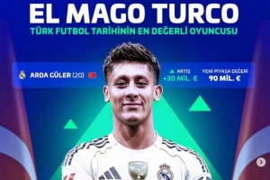在本次更新前,德轉(zhuǎn)身價(jià)最高的土耳其球員是伊爾迪茲,身價(jià)為7500萬(wàn)歐。