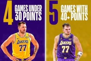 本賽季至今,他砍下40+得分的場(chǎng)次比低于30分的場(chǎng)次還要多。