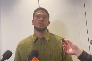 賽后,布克接受采訪時談到了自己對詹姆斯的關(guān)鍵三分犯規(guī)。