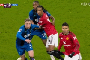 體育資訊12月16日訊 英超第16輪,曼聯(lián)主場迎戰(zhàn)伯恩茅斯,比賽第25分鐘,曼聯(lián)角球機(jī)會(huì)斯科特與卡塞米羅爭頂疑似手球,裁判沒有判罰。