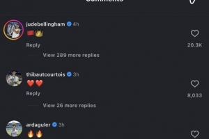 貝林厄姆、庫爾圖瓦、居萊爾等皇馬隊友為迪亞斯留言點贊。