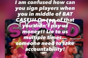 馬里奇曬出一張四川男籃簽下新外援的相關(guān)圖片,并在圖片中寫道:“我很困惑,你們?cè)趺茨茉谔幱谄飘a(chǎn)邊緣時(shí)還能簽球員?此外,你們還沒(méi)付我們拖欠的薪水!多次欺騙我們……有人需要出來(lái)負(fù)責(zé)。”